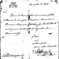 | Clothing and a Drum & Fife for Captain Thompson | Collection: Post Revolutionary War Papers, 1784-1815. (RG94) | B: 3 |