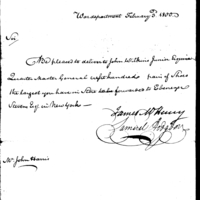 | Request for Shipment of Shoes to New York | Collection: Consolidated Correspondence File, 1794-1890. (RG92) | B:1203 |