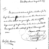 | Delivery of Medicine and Stores Chest | Collection: Correspondence, Reports, Returns, Bills, Accounts Current' Statements, Receipts, Vouchers and Contracts of Philadelphia Supply Agencies (Coxe and Irvine Papers), 1794-1842. (RG92) | B: 190 |