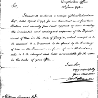 | William Steele transmit to William Simmons, John Habersham receipt applied to defray expenses | Collection: Receipts for Moneys Advanced (Advances), 1793-1855. (RG217) | B: 3 |