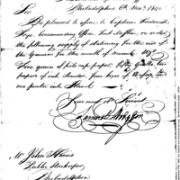 | Issue of Stationery for Garrison at Fort Mifflin | Document |