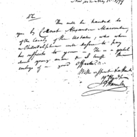 | Recommends Colonel Alexander Macombe | Collection: Gilder Lehrman Collection. | GLC01490 |