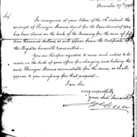 | Reports Close of Account with Ebenezer Stevens | Document |