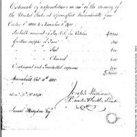 | Estimate of Expenditures for Armory at Springfield for October | Collection: Receipts for Moneys Advanced (Advances), 1793-1855. (RG217) | B: 4 |