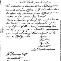 | Account of Peter Frothingham, Deceased | Collection: Post Revolutionary War Papers, 1784-1815. (RG94) | B:9 |