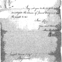| Inquiry on the claims of James Derry | Collection: Miscellaneous Numbered Records (Manuscript file) 1775-1790's. (RG93) (M859) | B:373 |