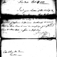 | Requesting a visit to New York | Collection: Miscellaneous Numbered Records (Manuscript file) 1775-1790's. (RG93) (M859) | B:391 |