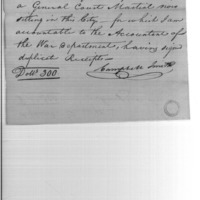 | Pay to Samuel Hodgdon on account of expenditures of general court martial | Collection: Receipts for Moneys Advanced (Advances), 1793-1855. (RG217) | B: 4 |