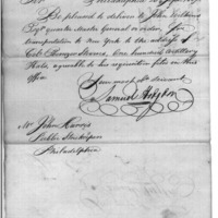 | Delivery of Artillery Hats | Collection: Correspondence, Reports, Returns, Bills, Accounts Current' Statements, Receipts, Vouchers and Contracts of Philadelphia Supply Agencies (Coxe and Irvine Papers), 1794-1842. (RG92) | B: 192 |