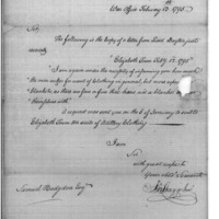 | The Men Suffer from Want of Clothing | Collection: Post Revolutionary War Papers, 1784-1815. (RG94) | B: 4 |