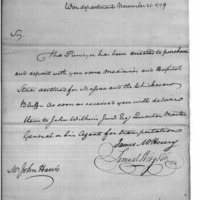 | Delivery of Medicine and Hospital Stores | Collection: Correspondence, Reports, Returns, Bills, Accounts Current' Statements, Receipts, Vouchers and Contracts of Philadelphia Supply Agencies (Coxe and Irvine Papers), 1794-1842. (RG92) | B: 190 |