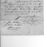 | Request for Issue of Bed Sacks & Trenchers for Use at Fort Mifflin | Document |