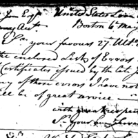 | [view document] (1 pages) | YTH10 (1 pages) | Collection: Claims Sent (Letterbook) by the Massachusetts Loan Office, Jun1, 1785-Aug 14, 1791. (RG53) (M925, roll 4) | V: 259; P: 156 |