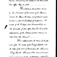 An extract of orders given by the Secretary of War to Lieutenant Colonel Joseph Harman commanding the troops on the Ohio. Dated War Office May 12, 1786.The intelligence transmitted by you on the 7th instant of the conduct of the Indians toward the Miami the latter end of March indicates at least a partial hostility of disposition. The escape of the hostages may be accounted for on the principles of fear after they had learned of the depredations of the Indians and our knowing to what tribes they belonged. It is [something] from the return of the [something] after the escape of the hostages together as of the letter of the 20th of March from the [unreadable] Chief that the Shawnee tribe cannot be [unreadable] as necessary to the degregations which have been committed. But which is the critical state of affairs