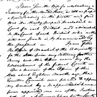 Letter, mentions a Bill for establishing a Judiciary; asks for Judicairy appointment.