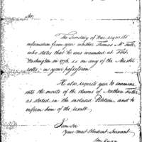 | [view document] (1 pages) | YZE02 (1 pages) | Collection: Miscellaneous Numbered Records (Manuscript file) 1775-1790's. (RG93) (M859) | B:375 |