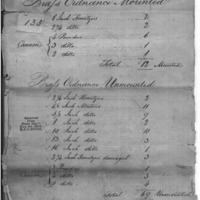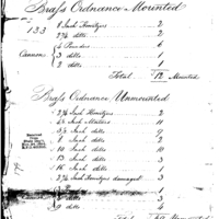 Inventory of ordnance and stores at Philadelphia, to include cannon, shells, cannon ball, arms, powder, lead, uniforms and equipment. Also included is a list of damaged equipment.
