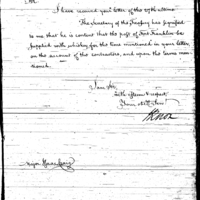 The Secretary of the Treasury has signified to me that he is content that the post at Fort Franklin be supplied with whiskey, for the time mentioned in your letter, on the account of the contractors, and upon the terms mentioned.