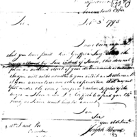 | Payment to Griffith Not an Authorized Disbursement | Collection: Post Revolutionary War Papers, 1784-1815. (RG94) | B: 11 |