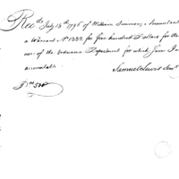 | Receipt of William Simmons to Samuel Lewis of Use of the Ordnance Department | Collection: Receipts for Moneys Advanced (Advances), 1793-1855. (RG217) | B: 2 |