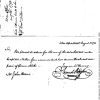 | [view document] (1 pages) | XEE04a (1 pages) | Collection: Correspondence, Reports, Returns, Bills, Accounts Current' Statements, Receipts, Vouchers and Contracts of Philadelphia Supply Agencies (Coxe and Irvine Papers), 1794-1842. (RG92) | B: 189 |