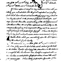 To revert back to a print, I had omitted the [indecipherable] delivered us by the Spanish to our Military. I have to observe that it will be very proper, should Governor Sargent find occasion for the use of any of them, for the purposes of his Government, as in a Court House, or Public Office & to accommodate <sup>him</sup> with such as are most suitable, provided the doing so, will not deprive the troops of necessary accommodation, or the public propose of secure deposit