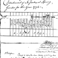 | Return of clothing to complete a detachment of infantry at Spring Garden for the year 1794 | Document |