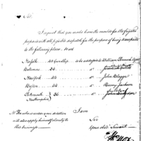 | Letter directing delivery of moulds of frigates | Collection: Presidents Papers, John Sullivan, 1787-May, 1788 | V:1; P:10 |