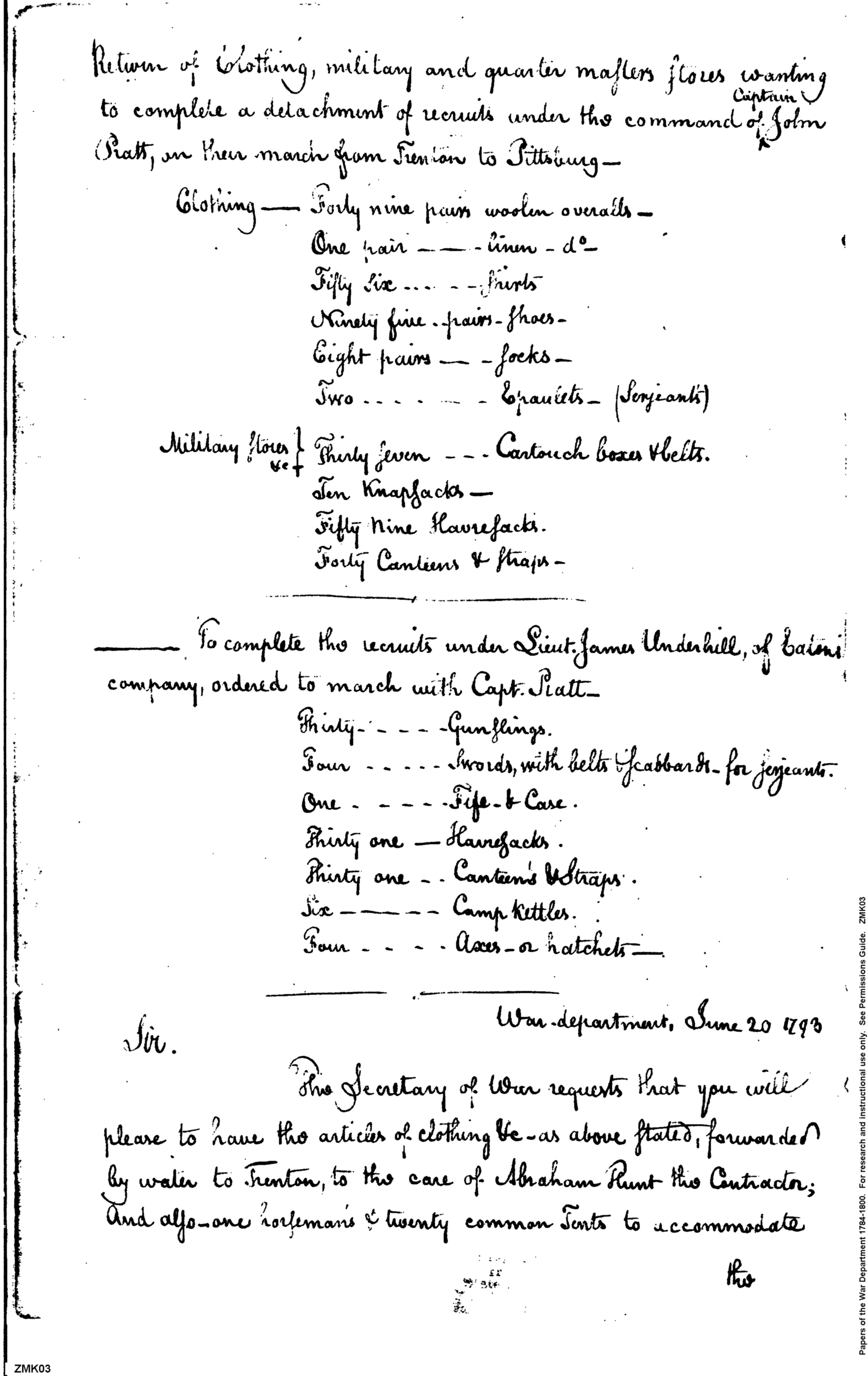 - Document: Clothing Stores for Capt. Pratt's Command