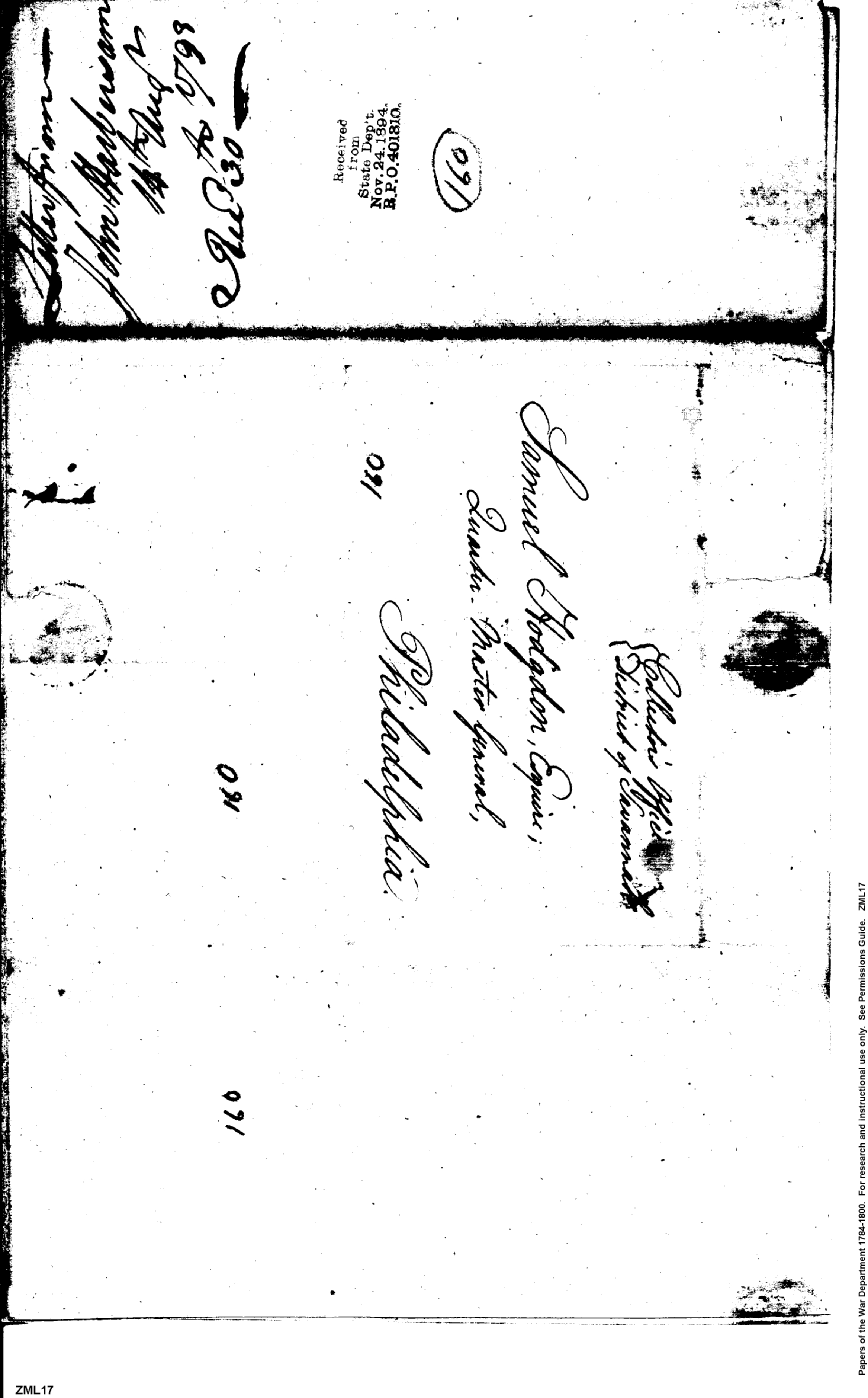 Post Revolutionary War Papers, 1784-1815. (RG94)