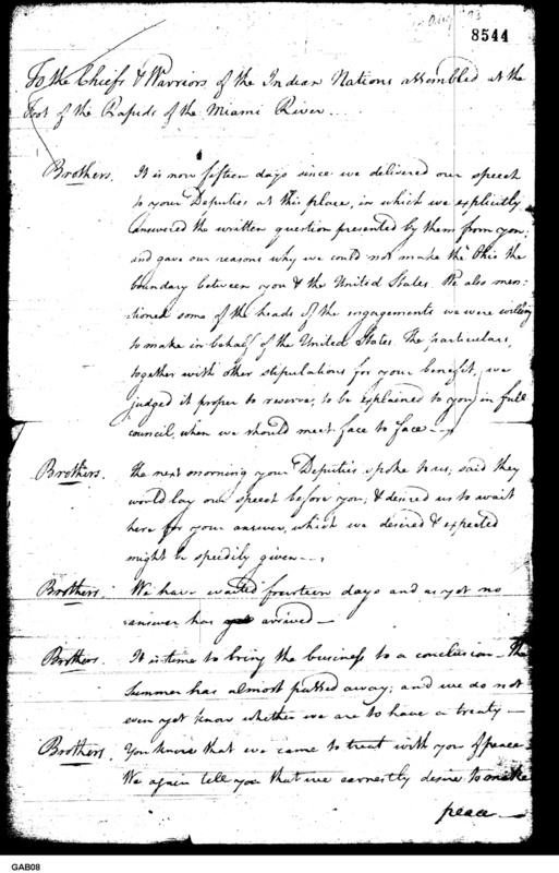 - Document: Speech to the Chiefs & Warriors of the Indian Nations