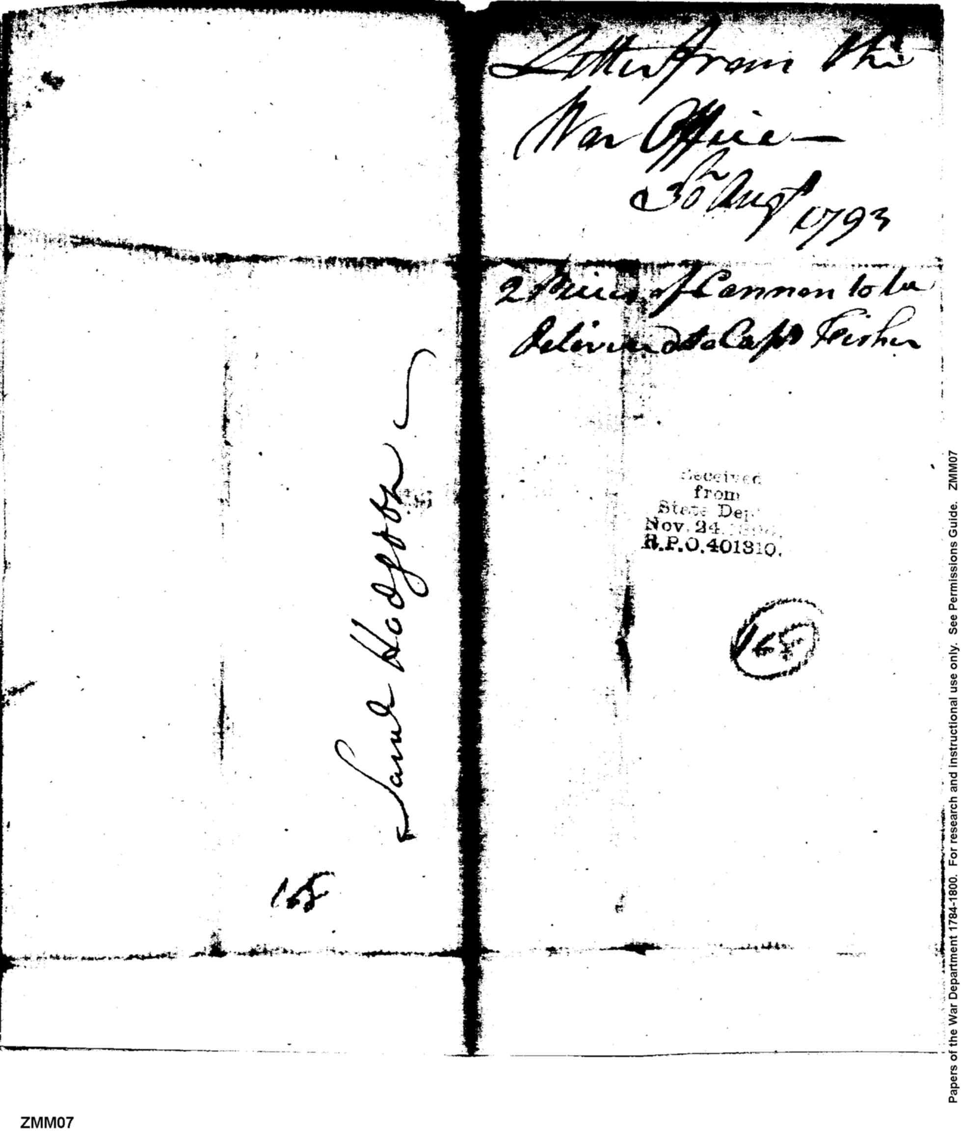- In source: Collection: Post Revolutionary War Papers, 1784-1815. (RG94)