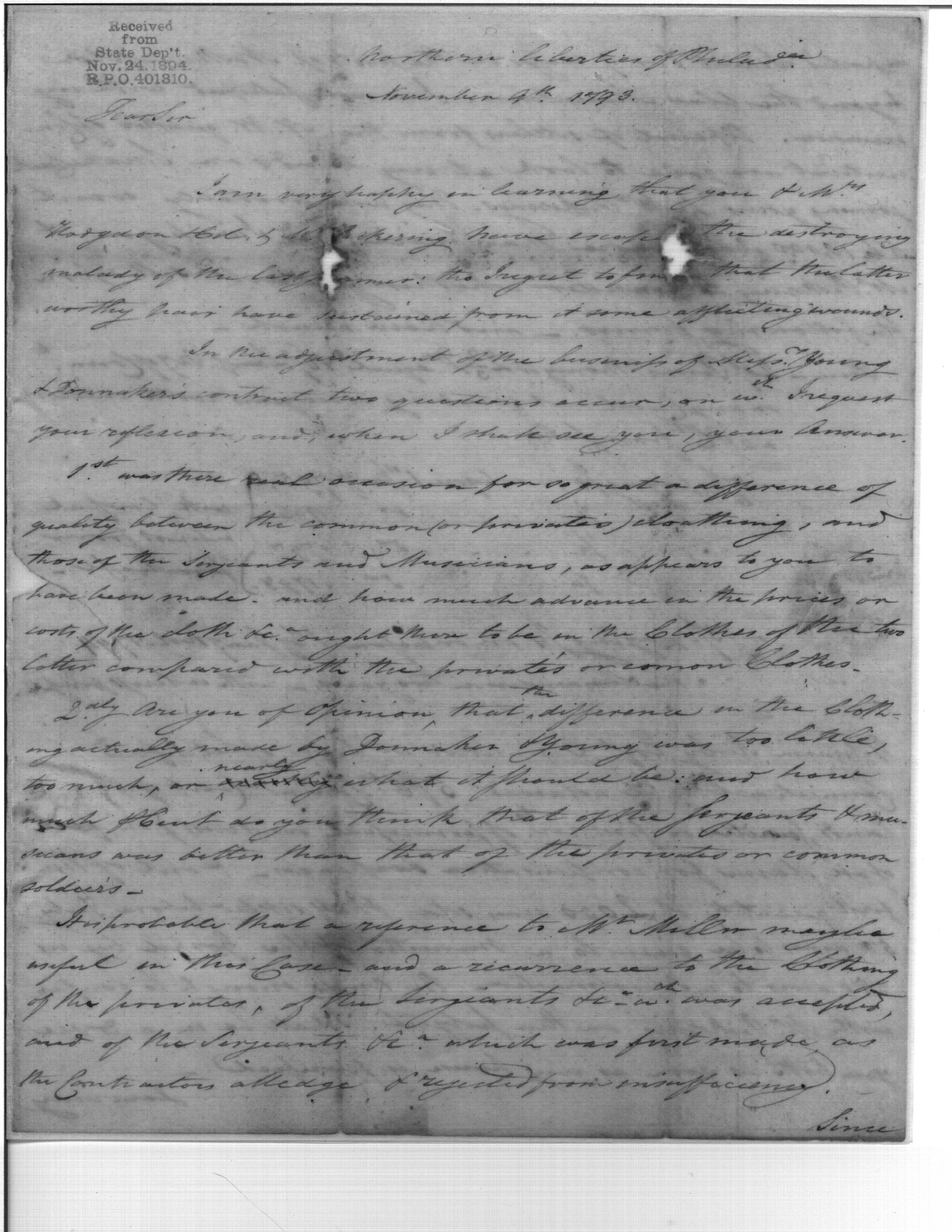 Post Revolutionary War Papers, 1784-1815. (RG94)