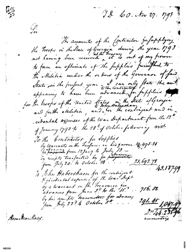 - Document: Estimate of Supplies Furnished to the Militia of Georgia