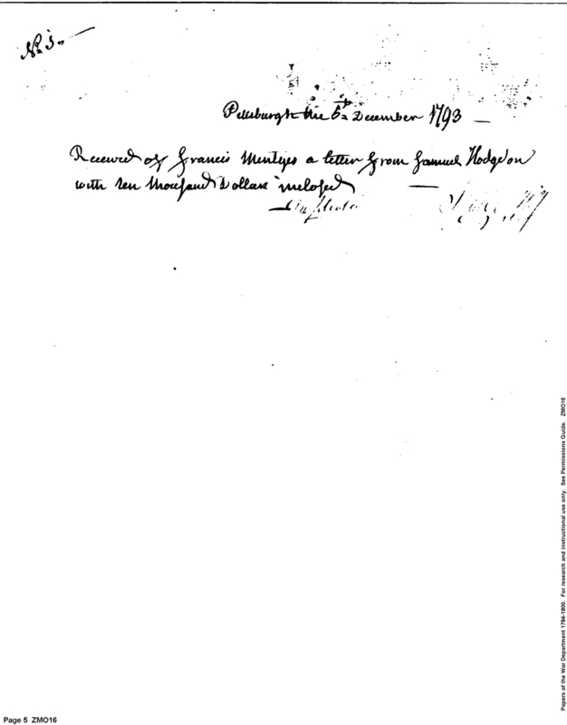 - In source: Collection: Post Revolutionary War Papers, 1784-1815. (RG94)