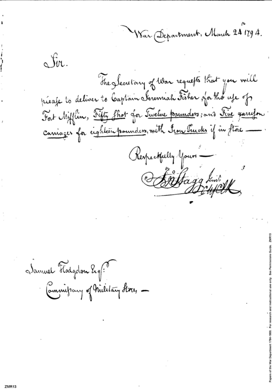 - Document: Arms & Carriages for Fort Mifflin