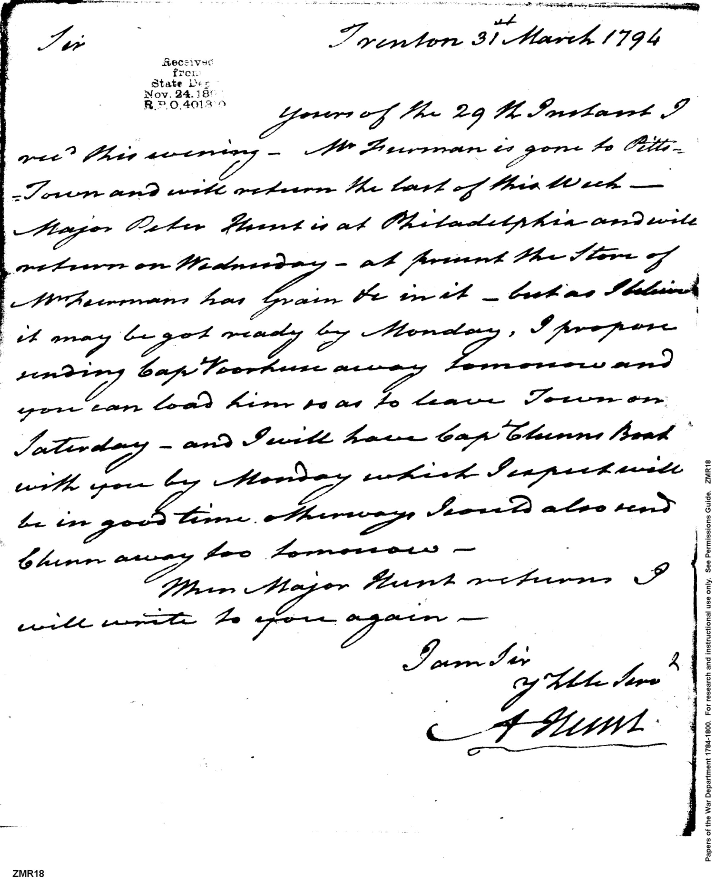 Post Revolutionary War Papers, 1784-1815. (RG94)