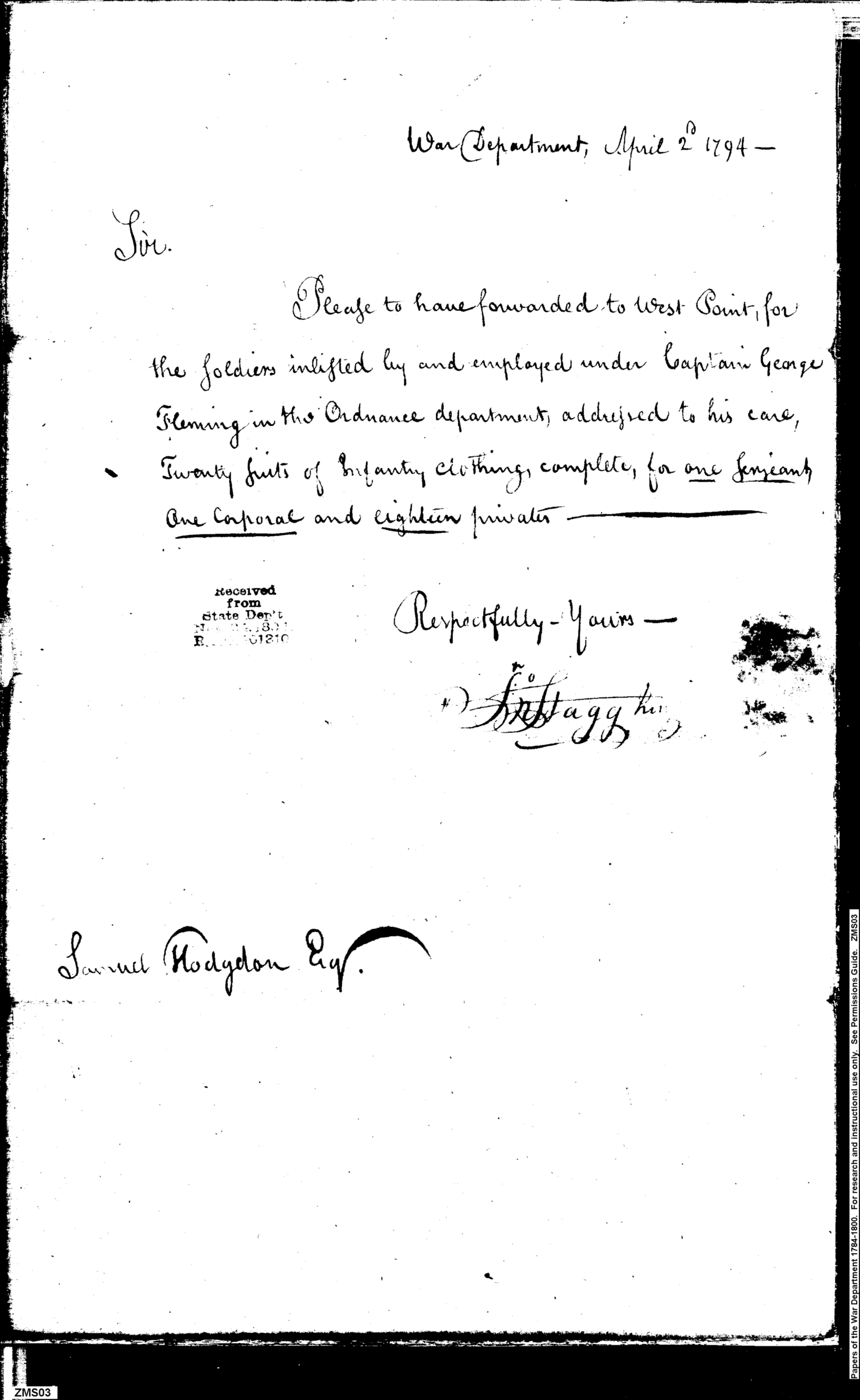- In source: Collection: Post Revolutionary War Papers, 1784-1815. (RG94)