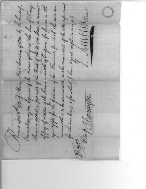 Document ViewerReceipt payment for Virginia militia for protection of frontier