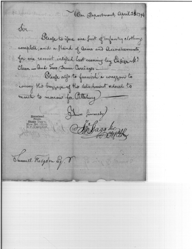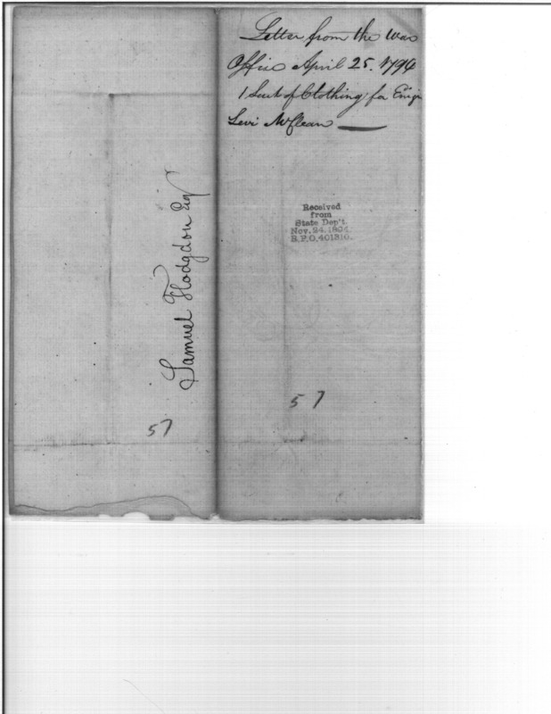 - In source: Collection: Post Revolutionary War Papers, 1784-1815. (RG94)