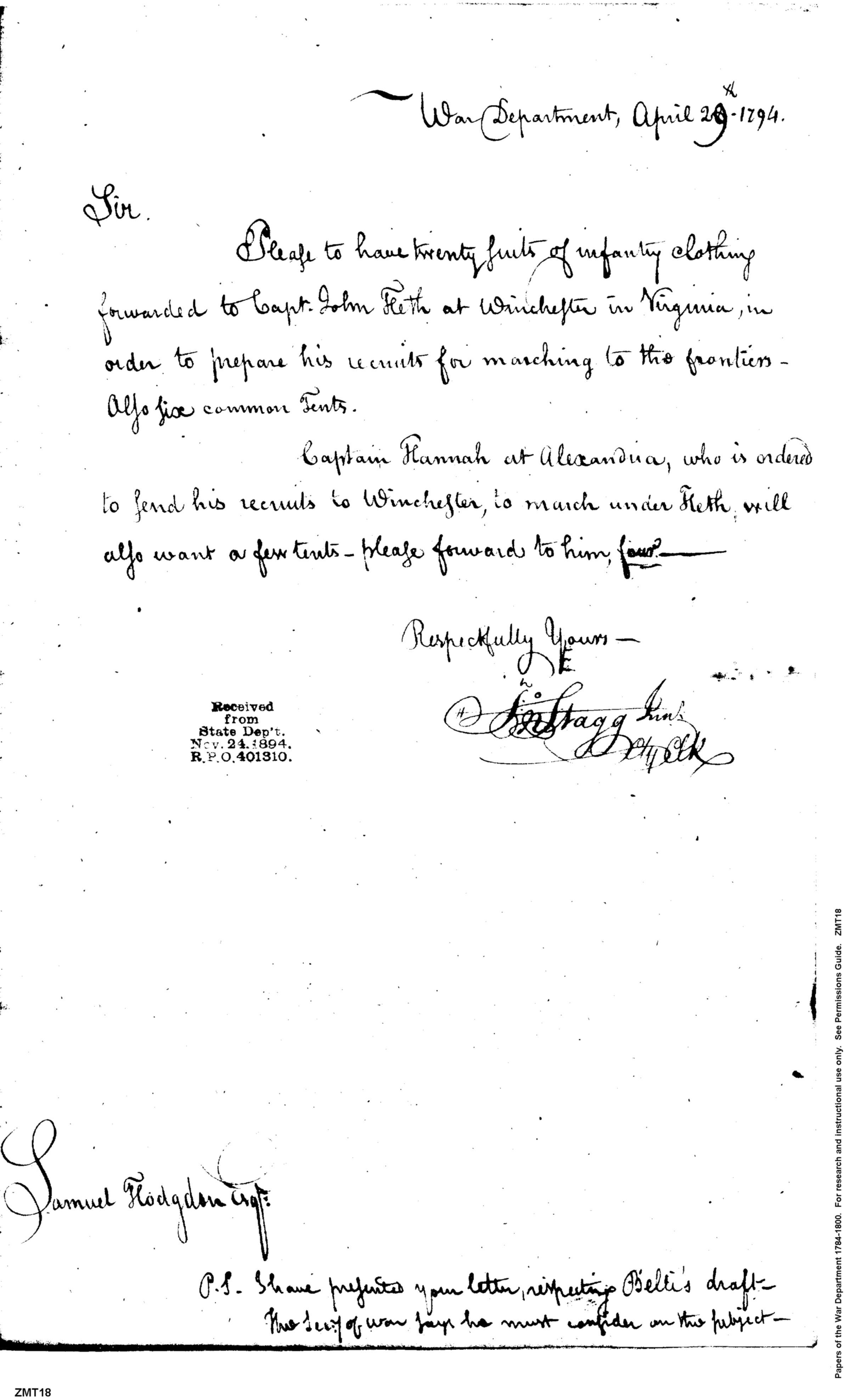- In source: Collection: Post Revolutionary War Papers, 1784-1815. (RG94)