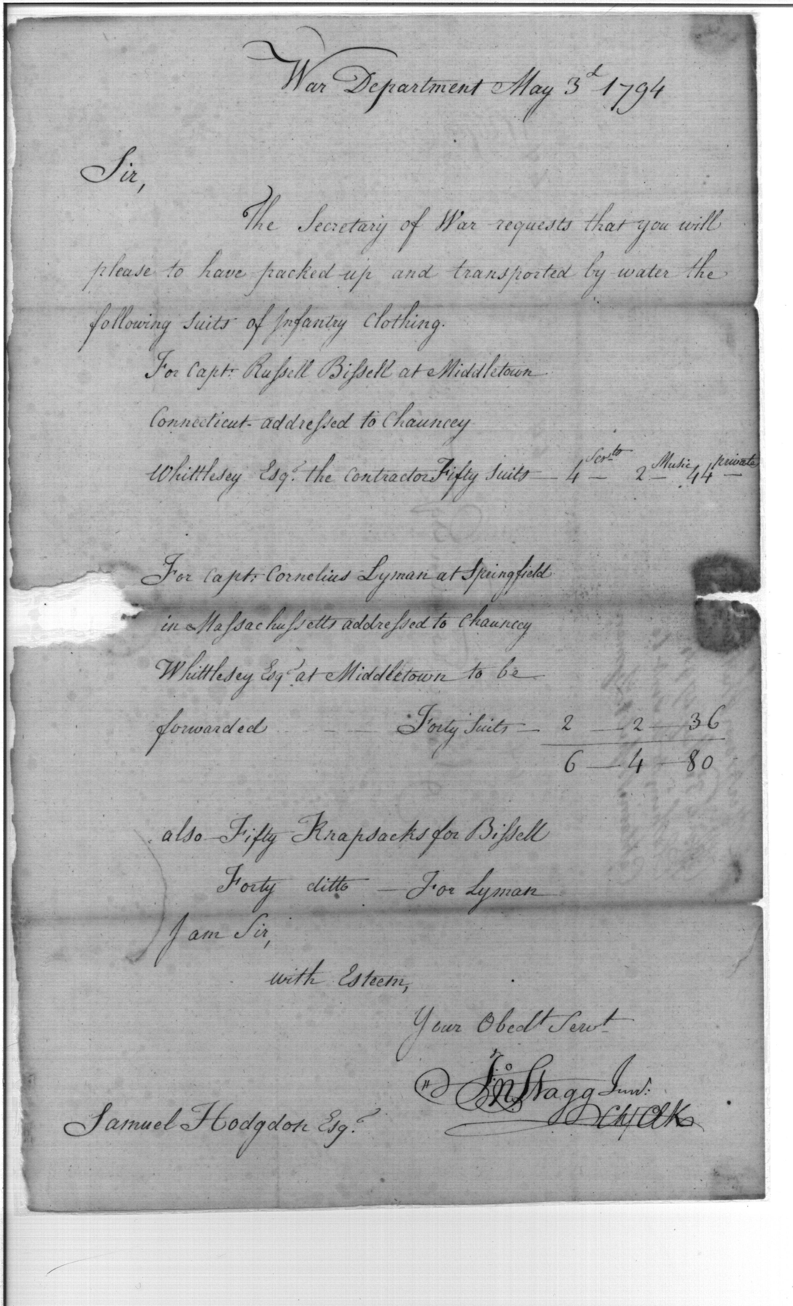 - Document: Transportation of Infantry Clothing