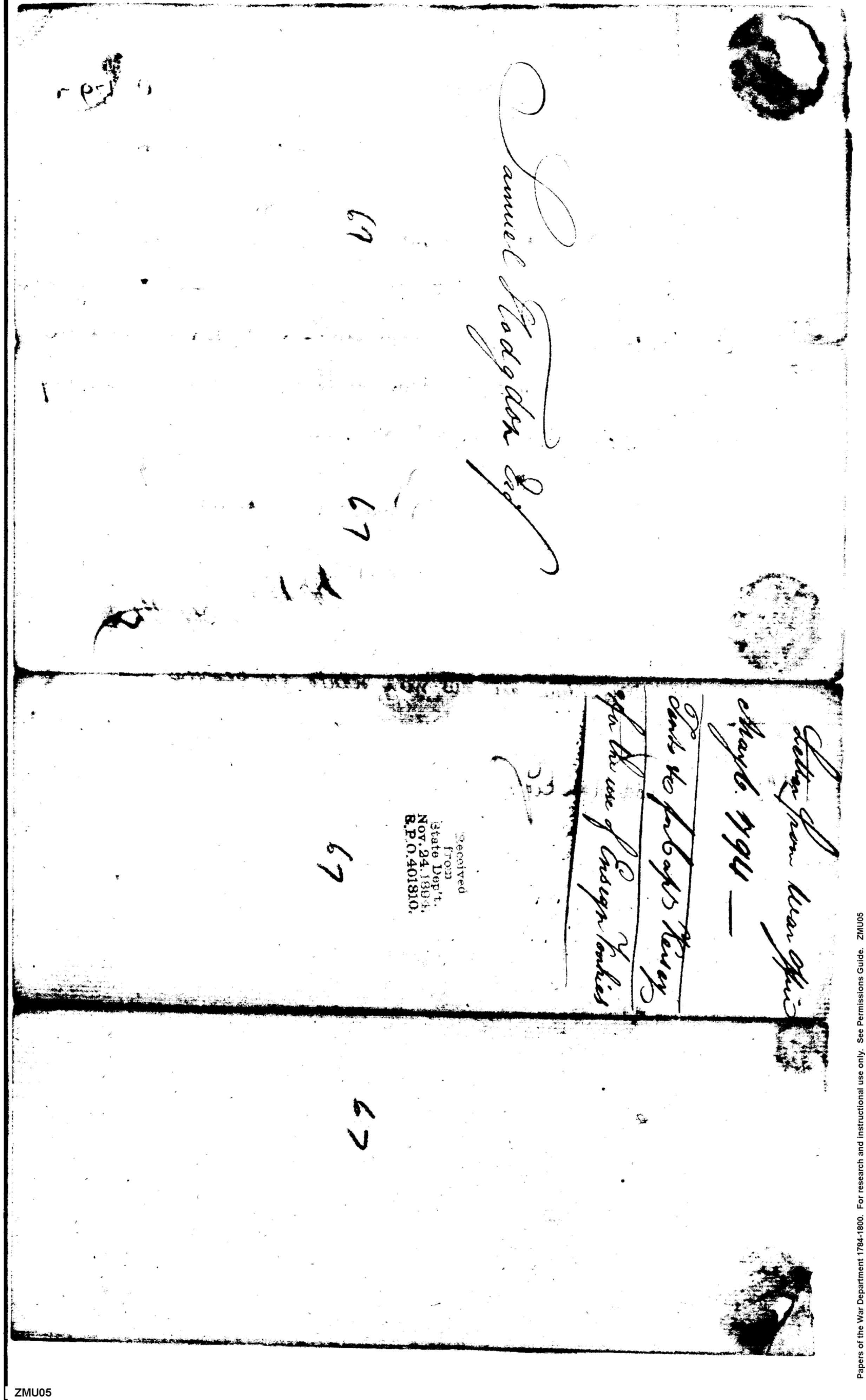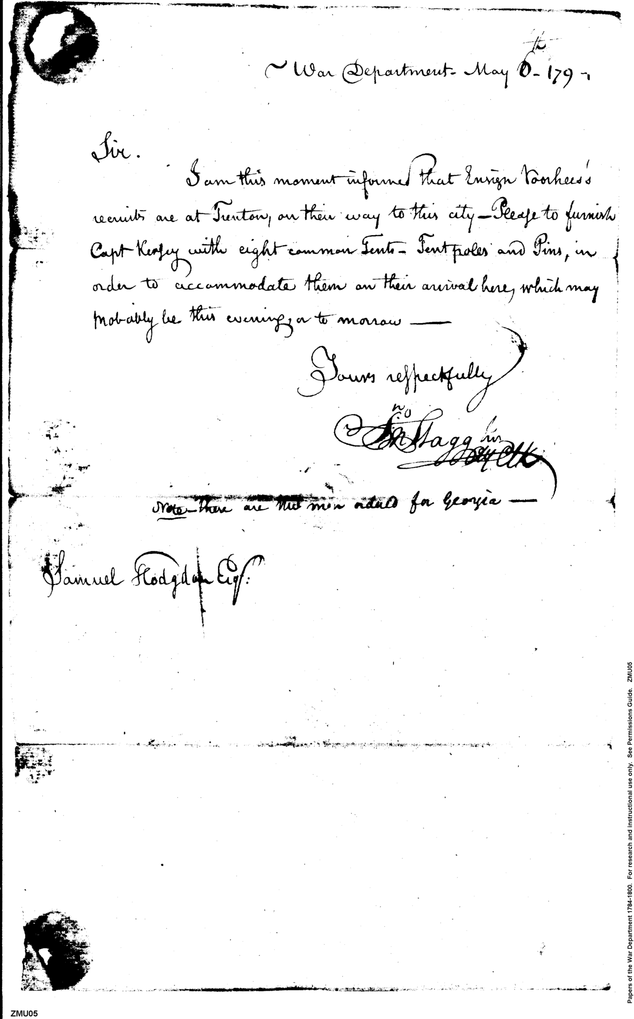 - In source: Collection: Post Revolutionary War Papers, 1784-1815. (RG94)