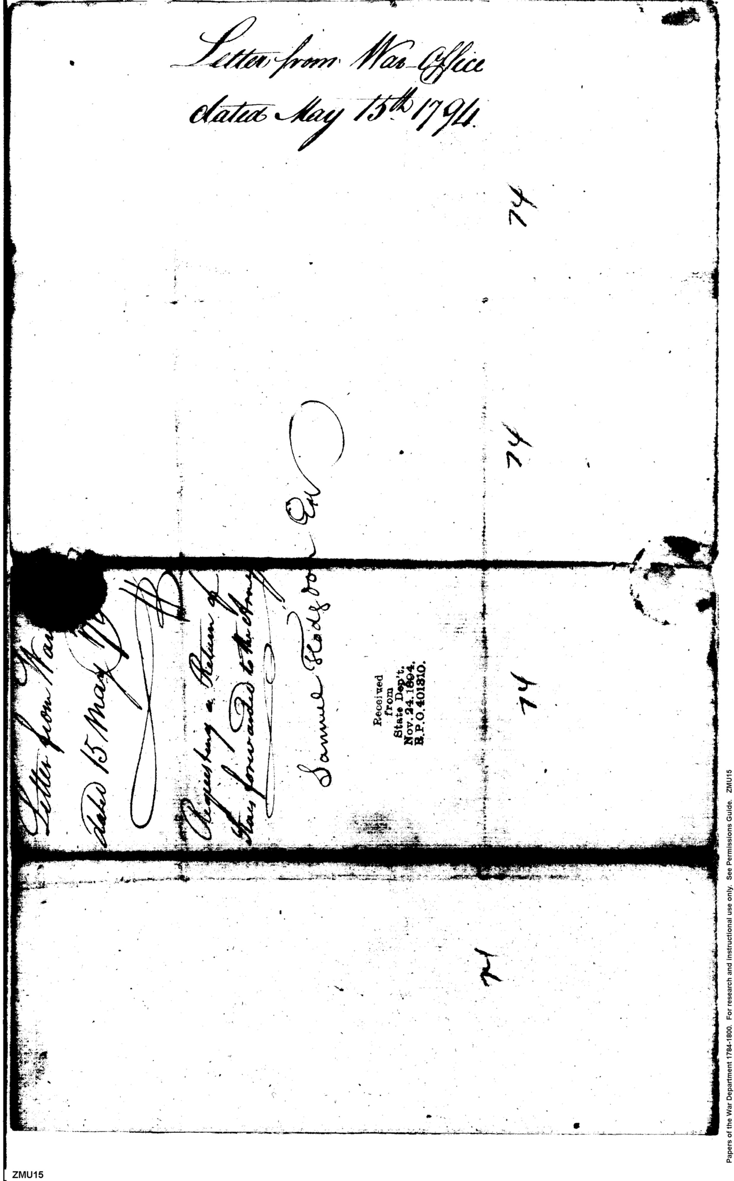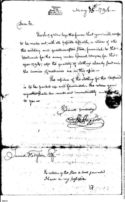 - In source: Collection: Post Revolutionary War Papers, 1784-1815. (RG94)