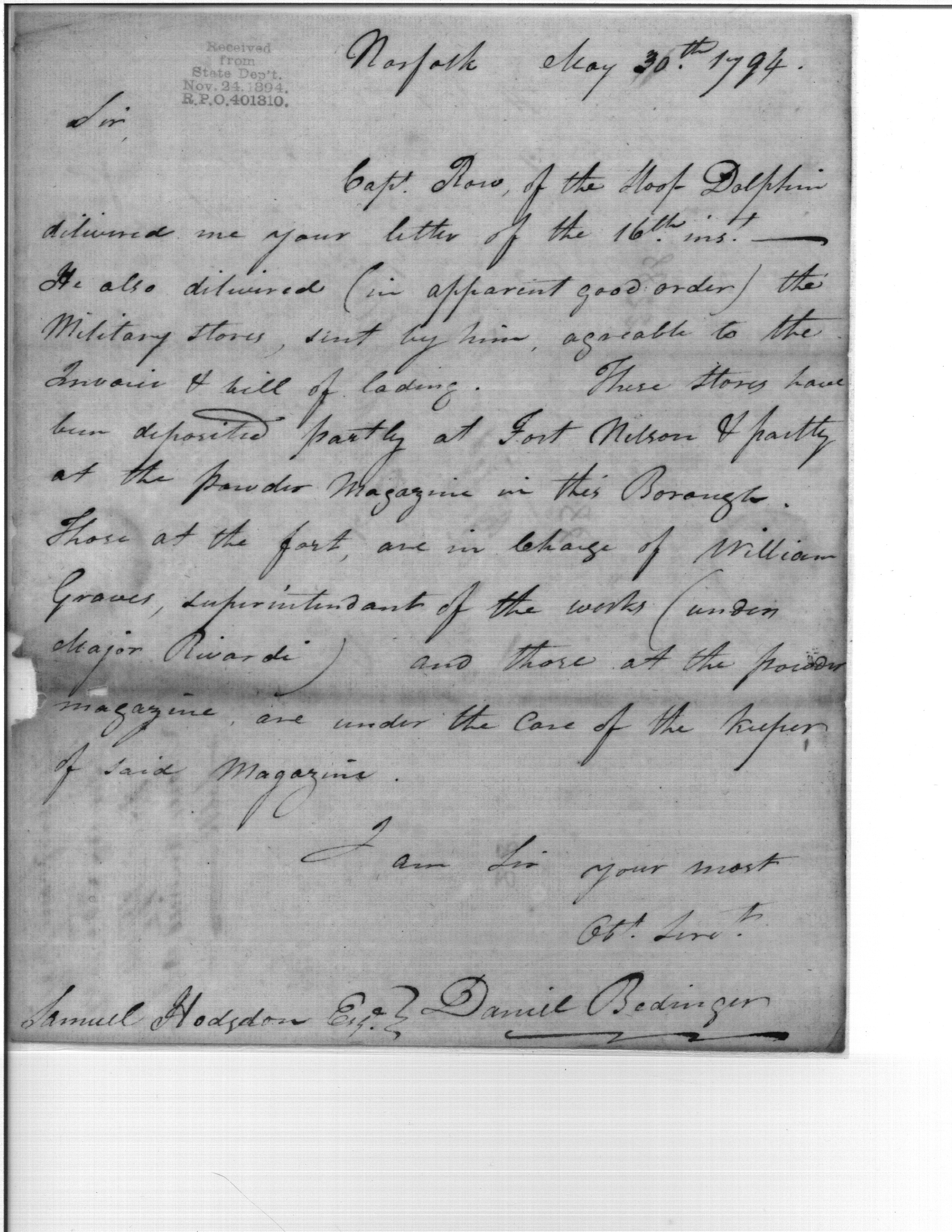 Delivery of Military Stores