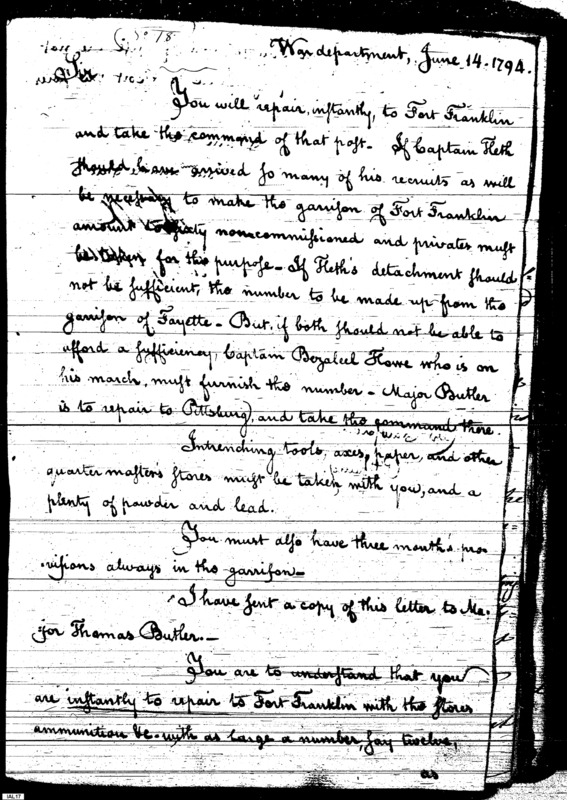 - Document: Secretary at War appoints the Commanding Officer at Fort Franklin