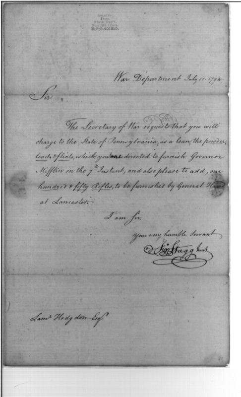 - Document: Powder, Lead, & Flints for Gov. Mifflin