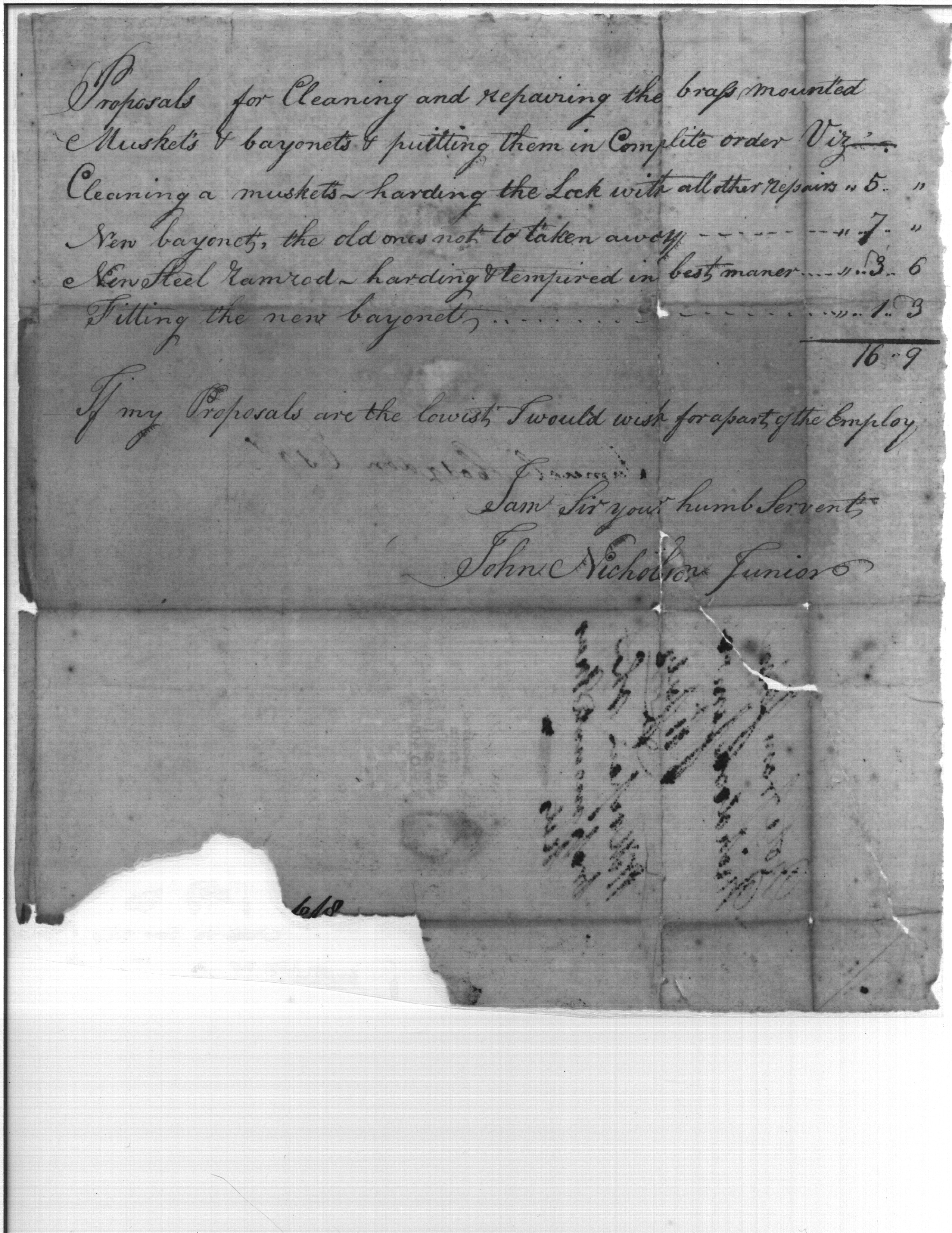 - Document: Proposal for Cleaning and Repairing Muskets