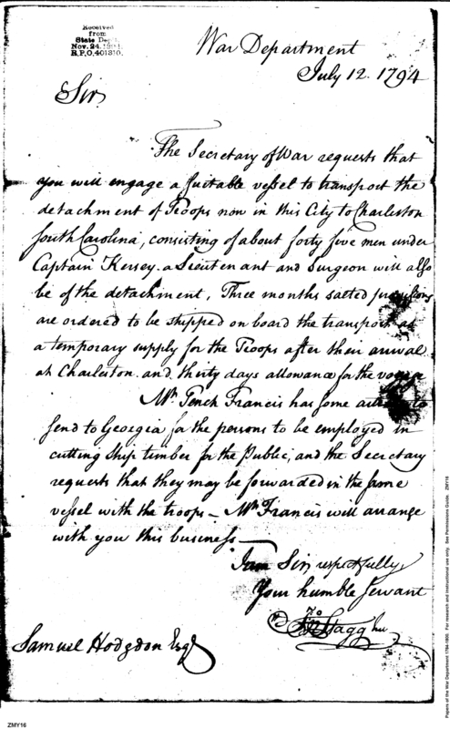 - In source: Collection: Post Revolutionary War Papers, 1784-1815. (RG94)