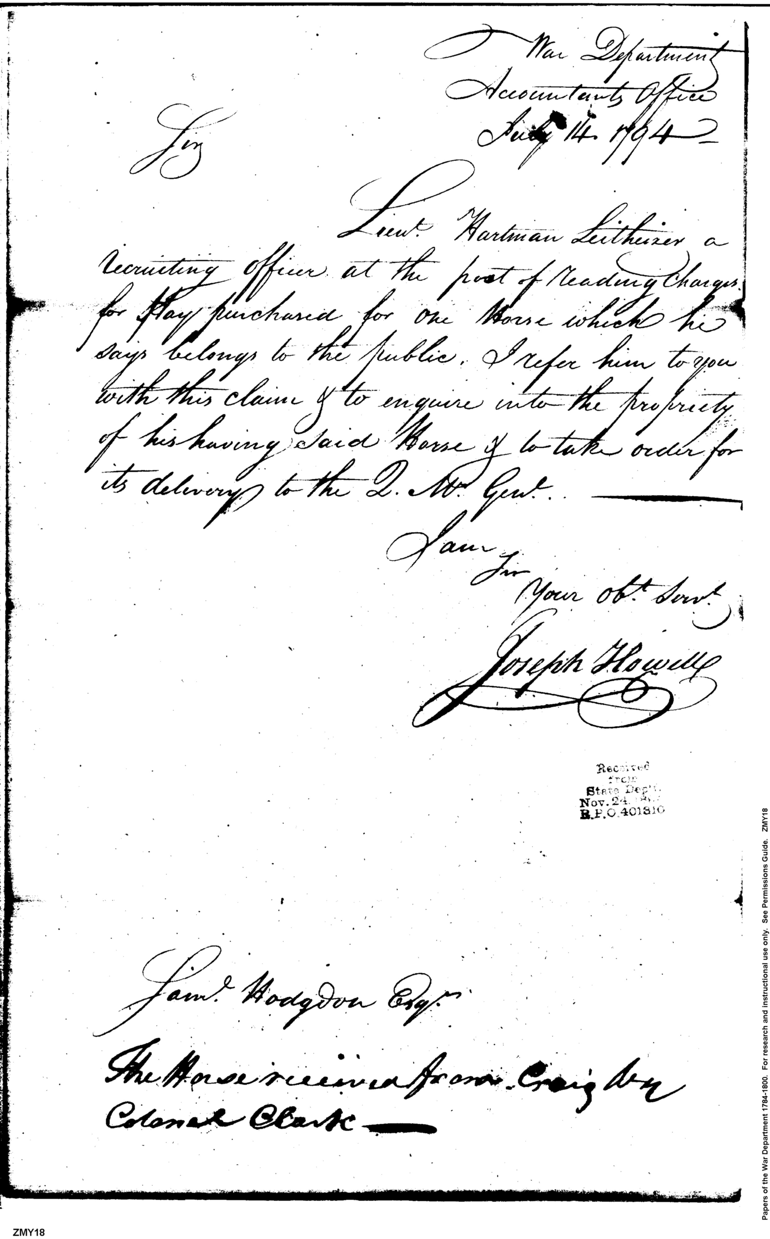 Post Revolutionary War Papers, 1784-1815. (RG94)
